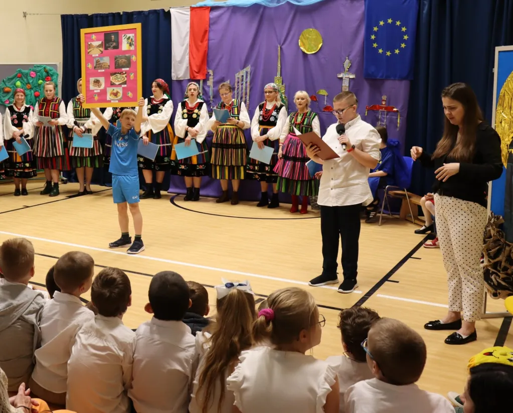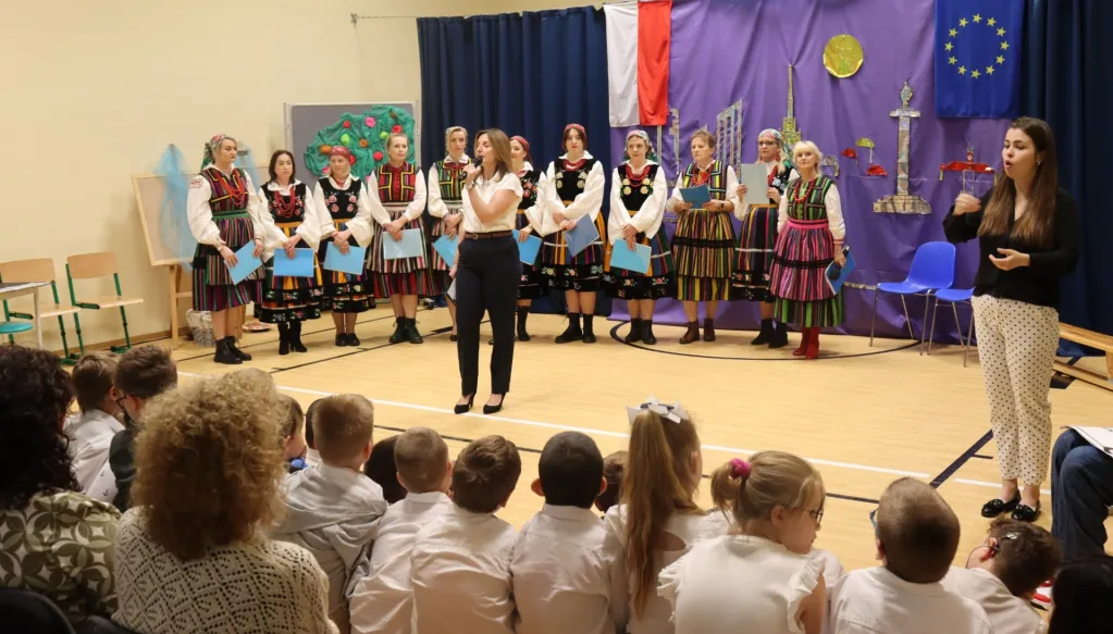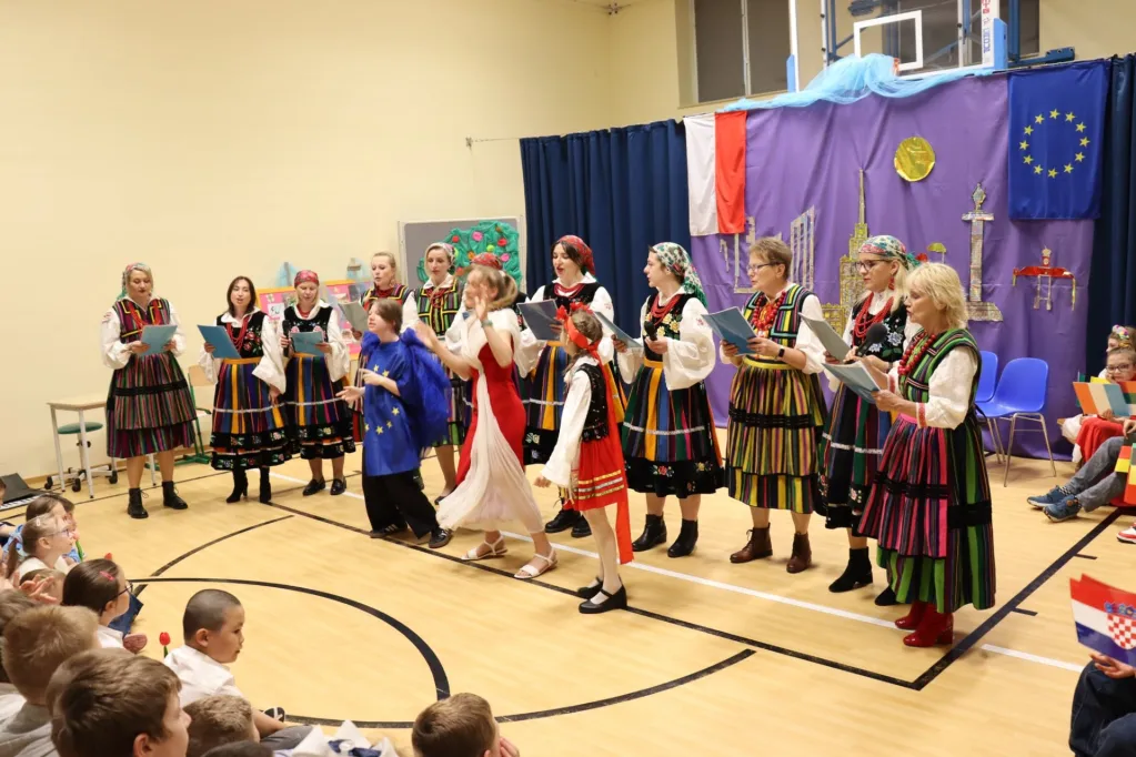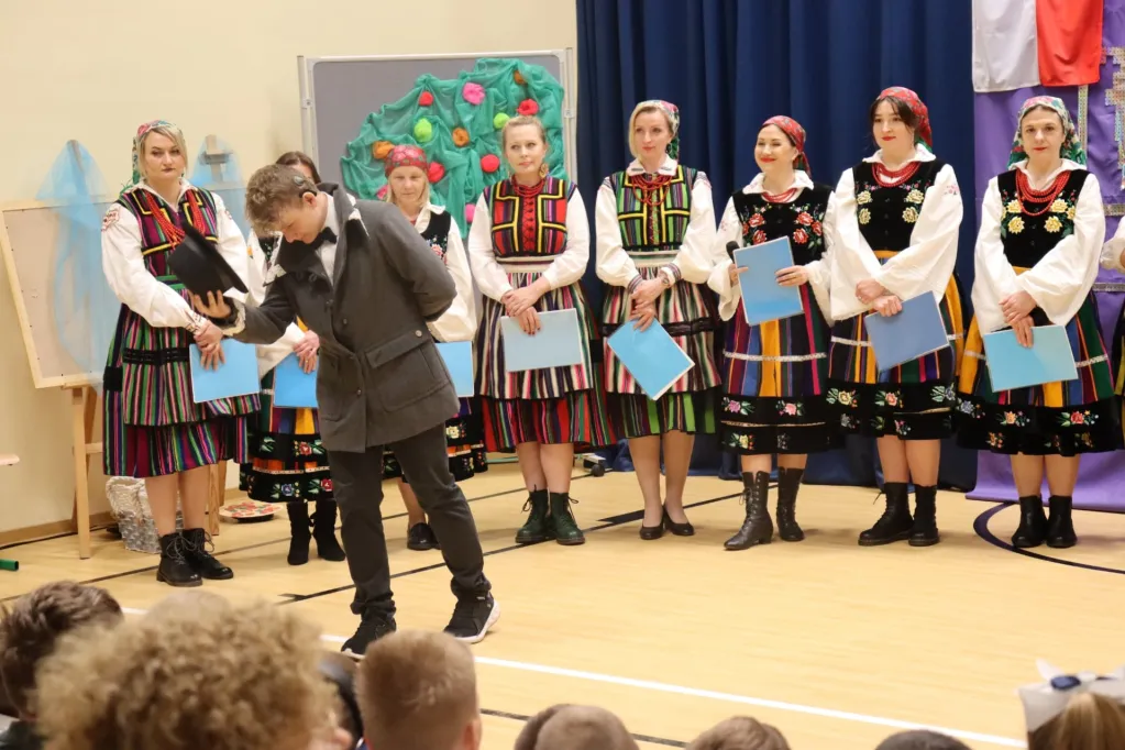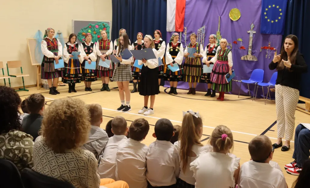 Prawdziwą perełką był również występ chóru naszych nauczycieli, którzy zachwycili nas nie tylko głosami, ale i kolorowymi strojami ludowymi! 🎤👗