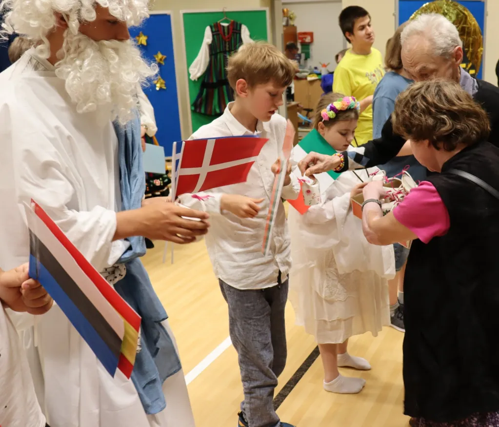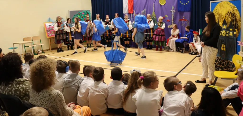 Na scenie wystąpiły klasy 4–8, prezentując po dwa kraje europejskie każda! 🇪🇸🇫🇷🇮🇹🇩🇪 A widownia miała nie lada zagwozdkę – zgadnąć, o jakich państwach mowa! ✨