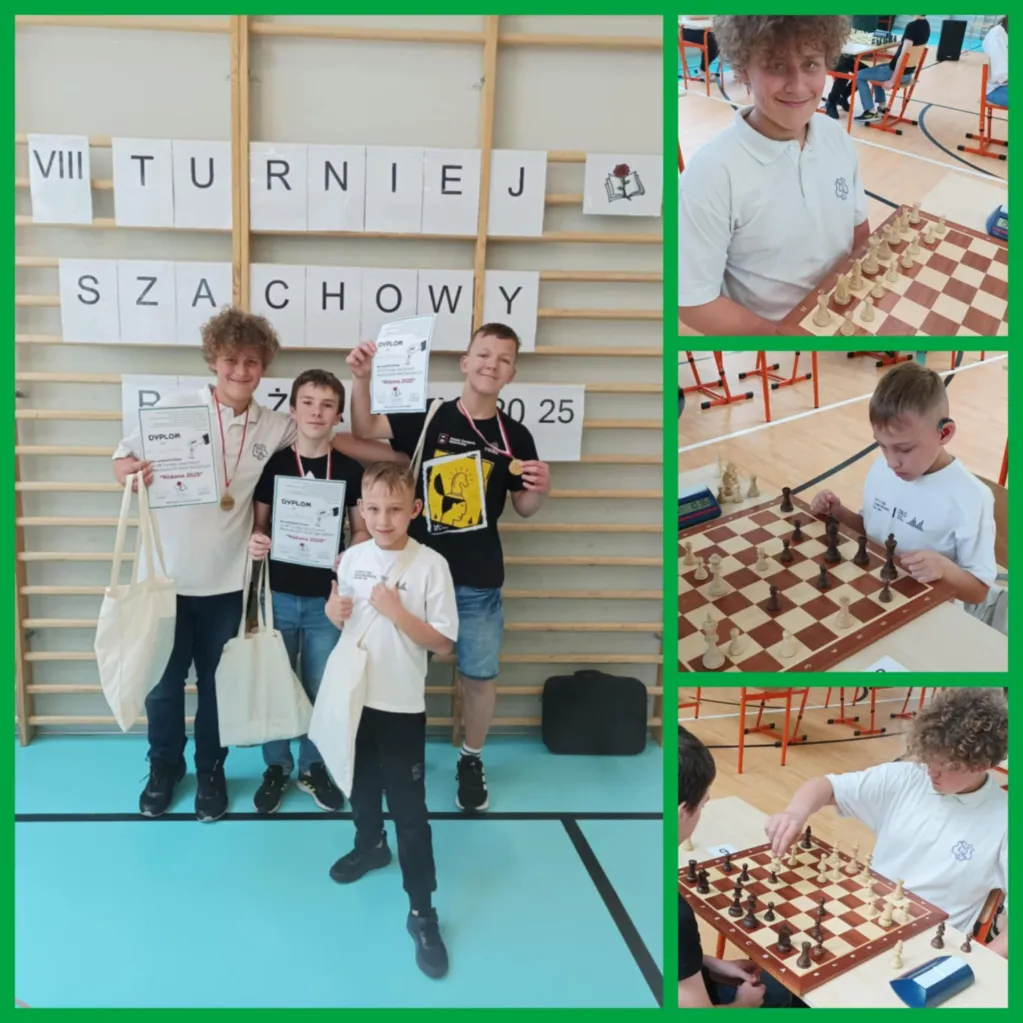 4 czerwca szachowi mistrzowie z naszej szkoły: Kuba, Maks, Hubert i Fabian wzięli udział w VIII Mazowieckim Turnieju Szachowym Szkół Specjalnych Różana 2025 organizowanym corocznie przez Szkołę Podstawową Specjalną nr 111 im.⁷ Stefana Starzyńskiego w Warszawie. W pięciu trudnych szachowych pojedynkach nasi wspaniali uczniowie pokazali ducha walki i postawę fair-play. Jeśli ktoś myśli, że szachy są nudne - nic bardziej mylnego! Emocje były ogromne, a radość z każdej wygranej - nie do opisania Naszym szachowym mistrzom gratulujemy wyników i życzymy dalszych sukcesów oraz nieustającej radości z gry w szachy!