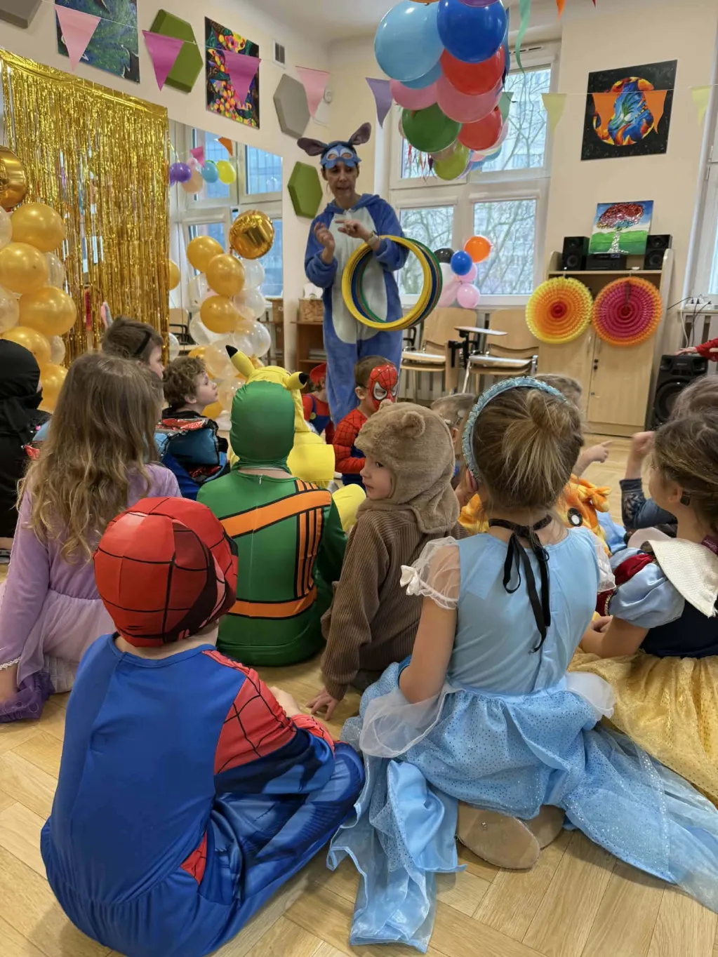 Dzieci zaprezentowały swoje stroje, tańczyły przy muzyce i brały udział w zabawach oraz konkursach. Nie zabrakło uśmiechów, radości i wspólnej zabawy! 😊