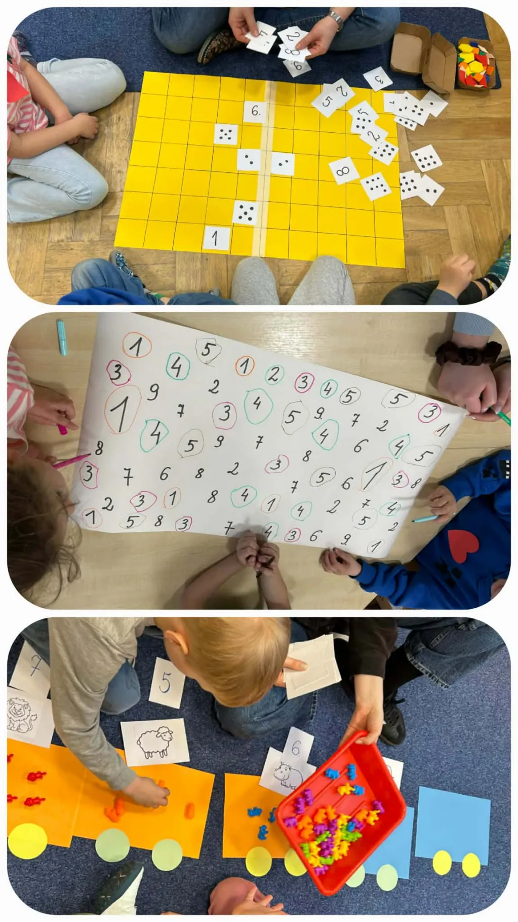 Było dużo zabawy z liczbami! Dzieci liczyły, segregowały różne przedmioty i dopasowywały kształty. 🔵🔺🔶
