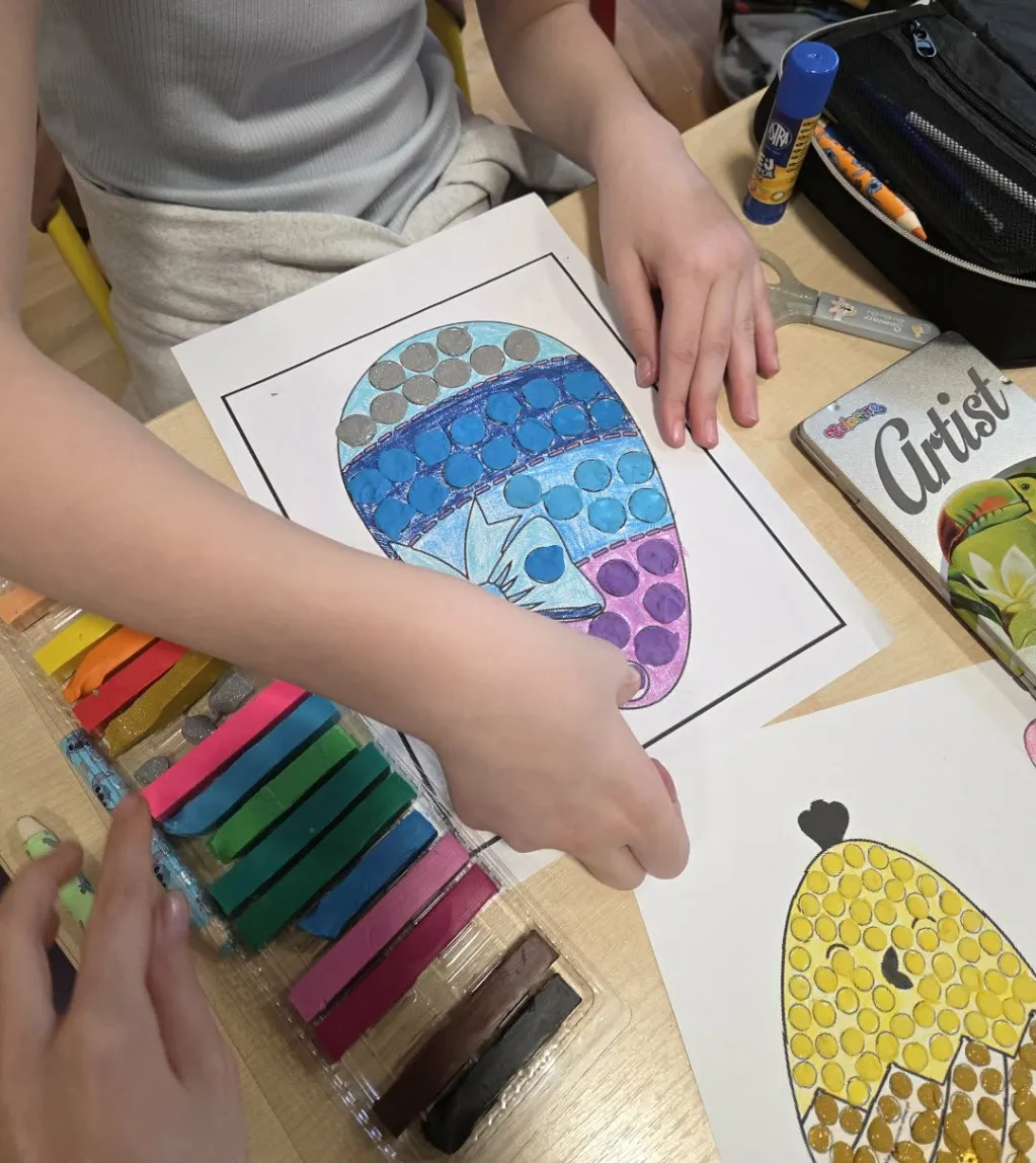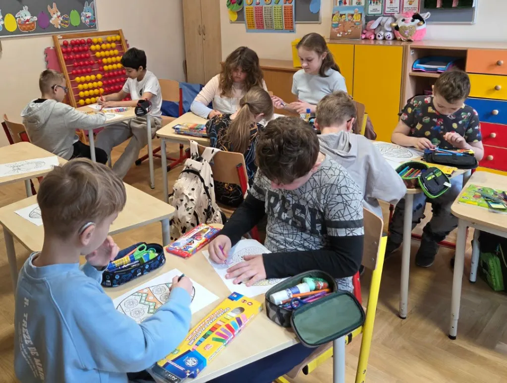 W naszych salach zrobiło się kolorowo i wiosennie – pojawiły się pierwsze dekoracje, pisanki oraz piękne prace plastyczne wykonane przez uczniów. Dzieci z zaangażowaniem tworzą ozdoby i poznają tradycje wielkanocne.