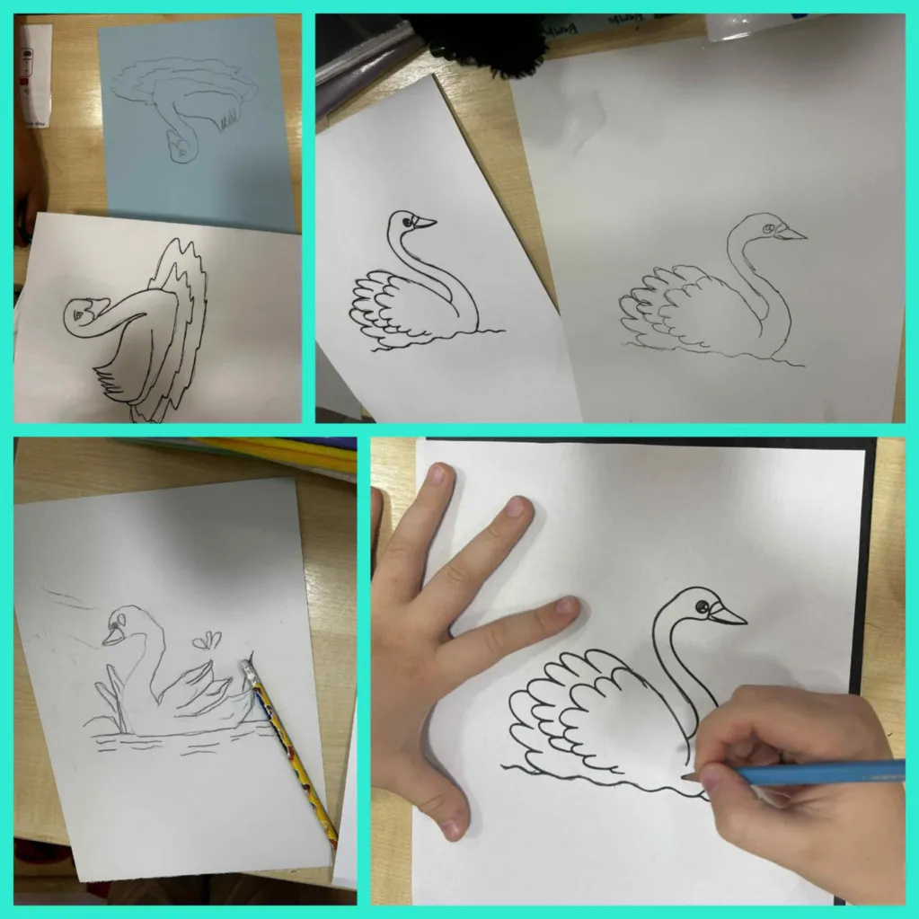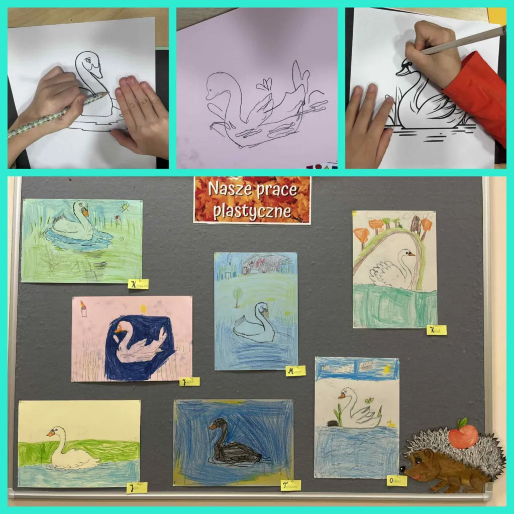 Klasa 2b na plastyce zamieniła się w małych artystów — rysowała eleganckie łabędzie z pomocą kalki 🦢✏️ A wiecie, że kalka to taka magiczna kartka, która pomaga przenieść rysunek jak czarodziejska różdżka? 🪄 Efekt? Łabędzi balet na papierze i mnóstwo uśmiechów! 😄🎨