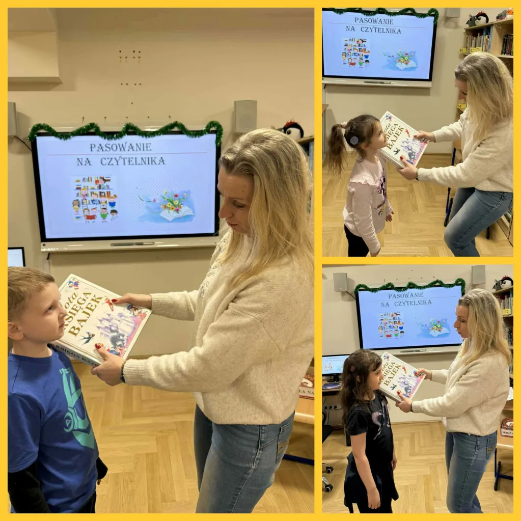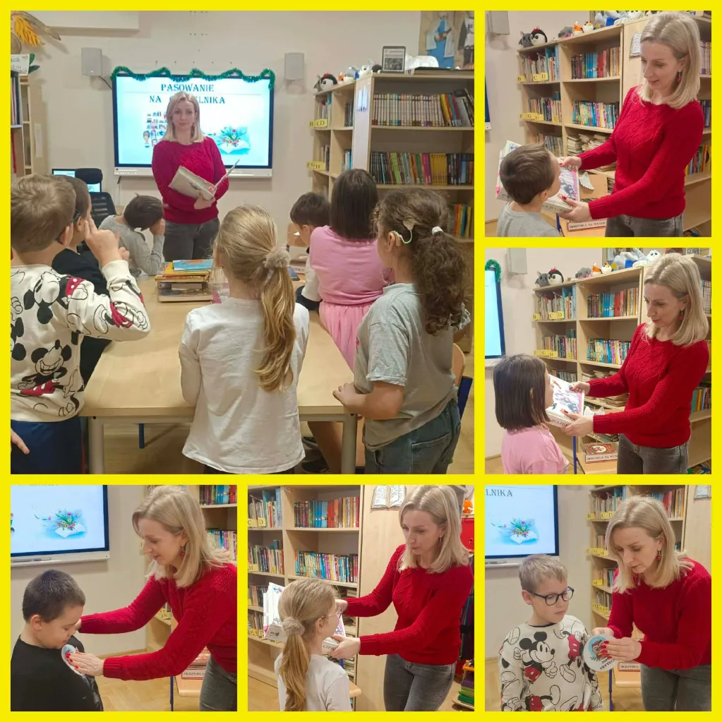 W szkolnej bibliotece jak zwykle gwarno. Tym razem za sprawą uczniów klas 1, którzy zostali pasowani na czytelników. 🎓📖Pani bibliotekarka zapoznała dzieci z rodzajami książek dostępnych dla odwiedzających bibliotekę. Wyjaśniła zasady ich wypożyczania i zwrotu. Najważniejszym jednak momentem było złożenie przez uczniów przyrzeczenia, że będą o książki dbać i je szanować, po którym nastąpiło uroczyste pasowanie. Każdy nowy czytelnik otrzymał na pamiątkę wyprawkę czytelniczą zapewnioną przez Instytut Książki. Gratulujemy naszym pierwszakom🎉 i czekamy na kolejne odwiedziny w bibliotece. 📚📘
