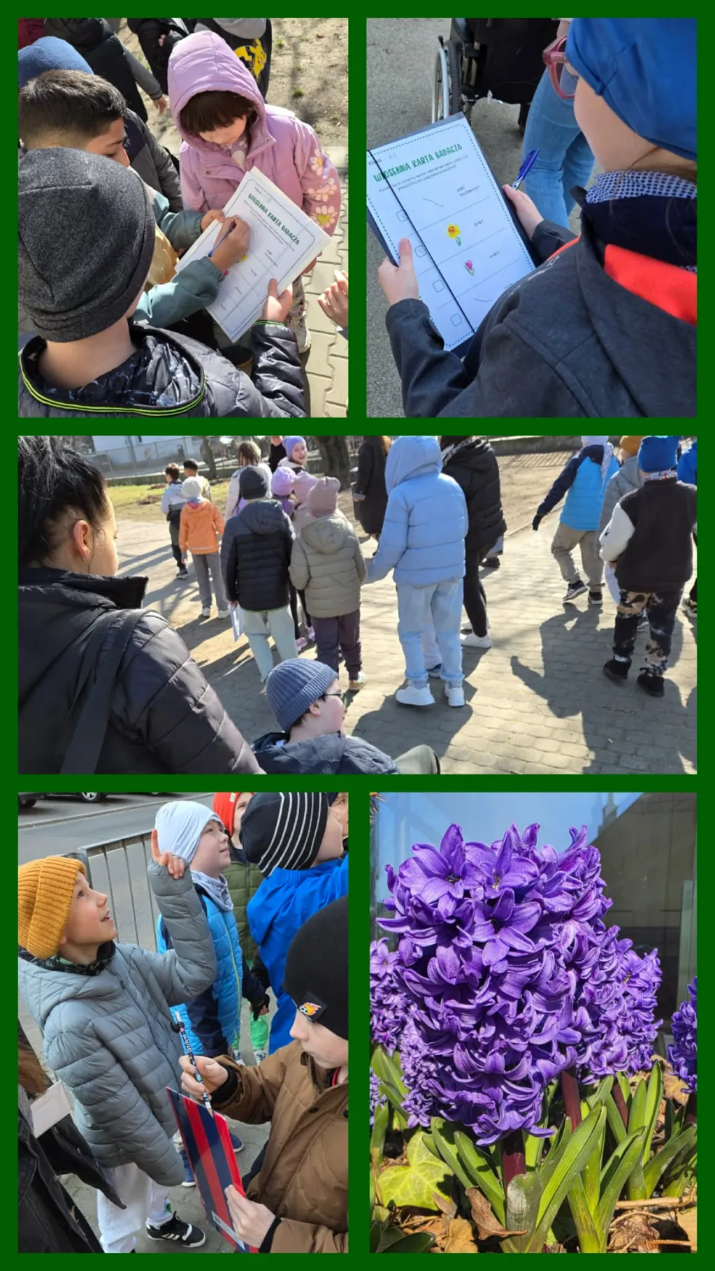 Uczniowie klas 1–3 wybrali się na spacer w ramach edukacji przyrodniczej, by poszukać pierwszych zwiastunów wiosny. 🌱