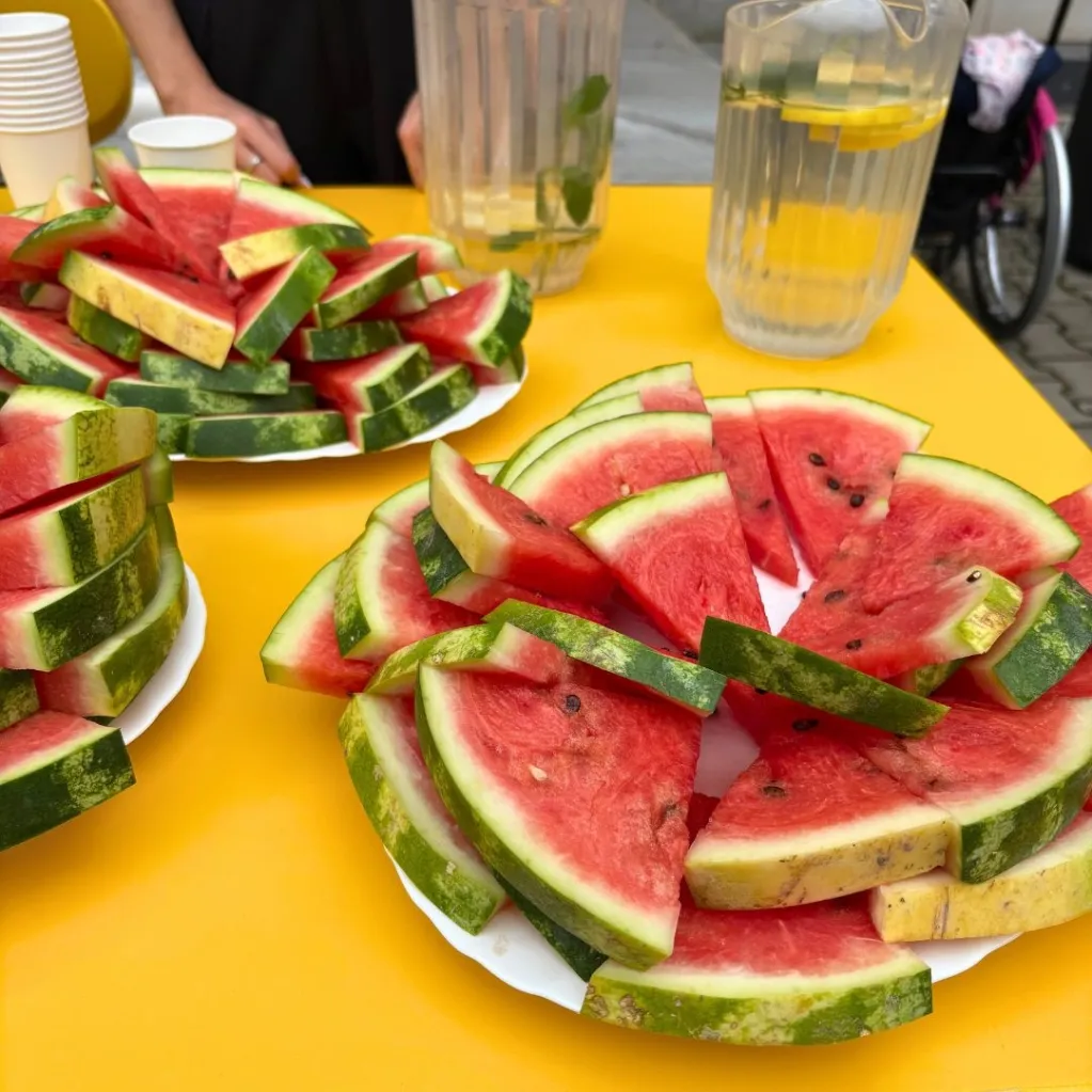 Strefa gastronomiczna. Oprócz atrakcji, na uczestników czekała również strefa gastronomiczna. Można było poczęstować się grillowanymi pysznymi kiełbaskami, świeżymi owocami i domową lemoniadą.