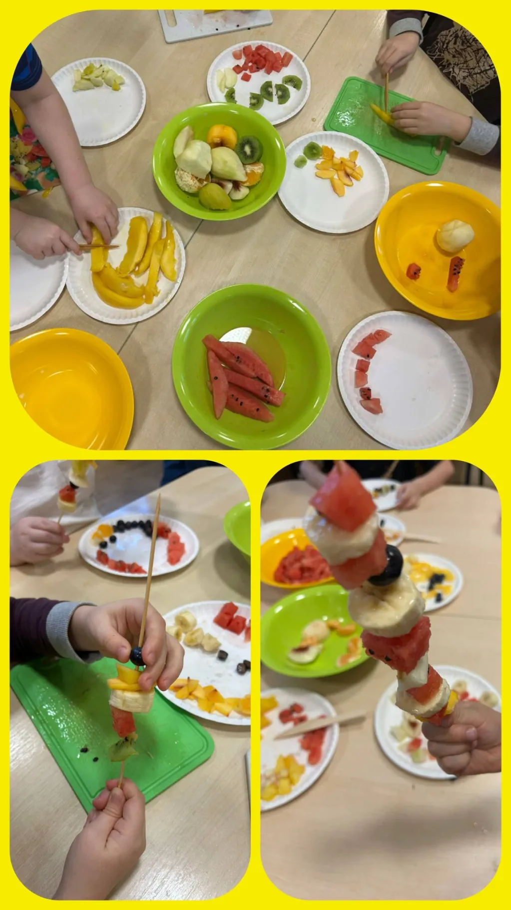Potem dzieci zrobiły kolorowe szaszłyki owocowe 🍓🍍🍡.