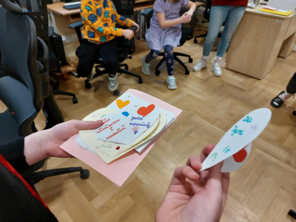 Uczniowie ch臋tnie wrzucali kartki z mi艂ymi s艂owami, wyznaniami sympatii i serdecznymi pozdrowieniami dla swoich kole偶anek, koleg贸w i pracownik贸w szko艂y.