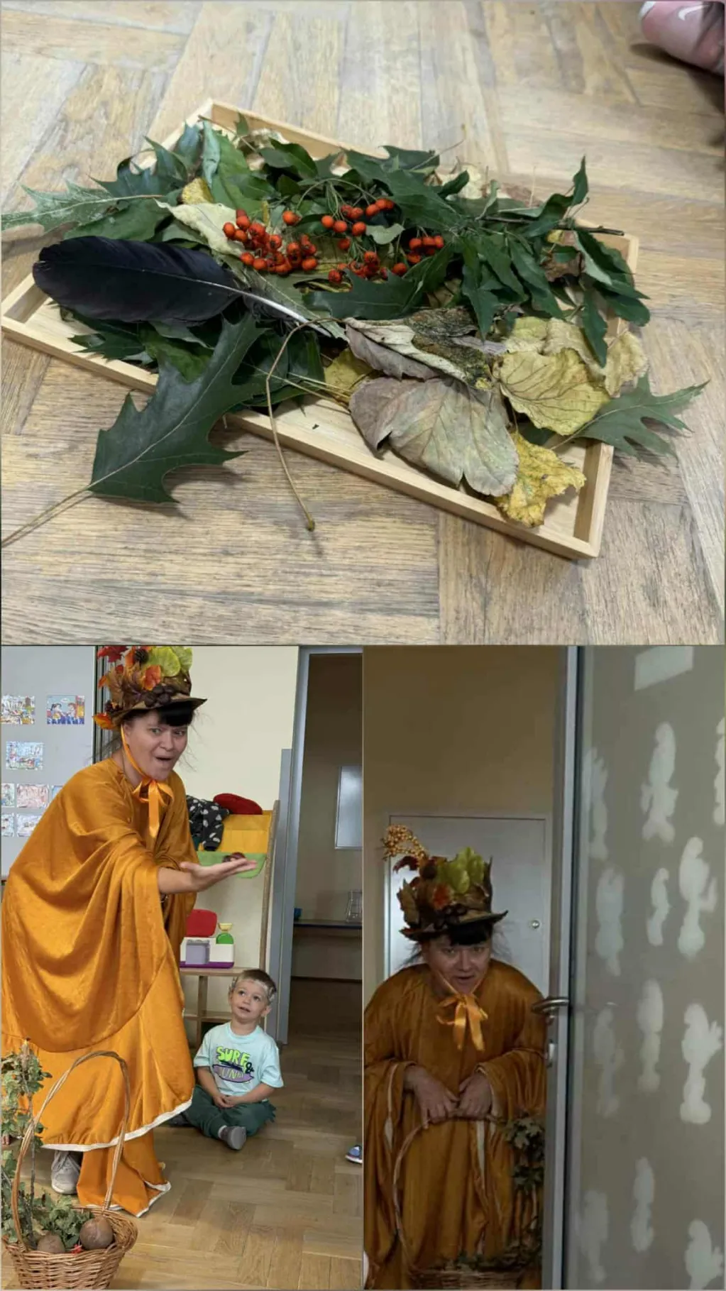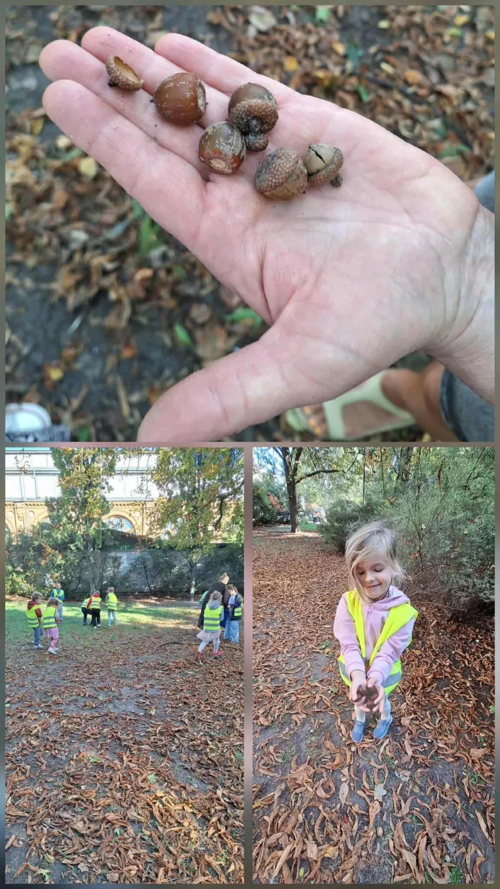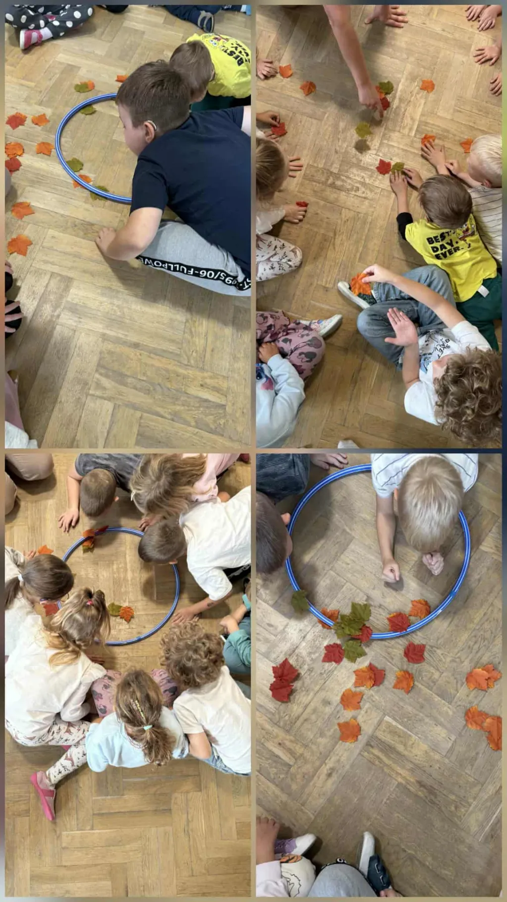 Do naszego przedszkola zawitała Pani Jesień, która przyniosła ze sobą kosz pełen skarbów: kolorowe liście, kasztany i żołędzie. Dzieci uczestniczyły w jesiennych zabawach: tańczyły z liśćmi, tworzyły prace plastyczne z darów natury i malowały obrazy w ciepłych barwach jesieni. Zerówkowicze wybrali się również do pobliskiego parku, gdzie szukali oznak nowej pory roku. Znaleźli mnóstwo kasztanów, żołędzi i pięknych liści. Były także zabawy sensoryczne z jesiennymi owocami oraz wspólne rozmowy o tym, co w jesieni najpiękniejsze. To był kolorowy, pełen radości dzień, który na długo zostanie w naszej pamięci!