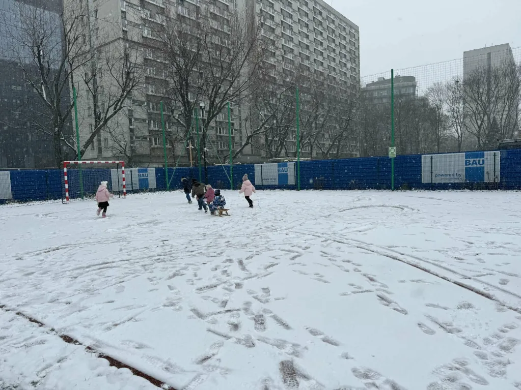 Przedszkolaki z radością zjeżdżały na sankach i bawiły się w zimowe zabawy. Było mnóstwo śmiechu, rumiane policzki i świetna atmosfera dokładnie tak, jak lubimy! ❤️