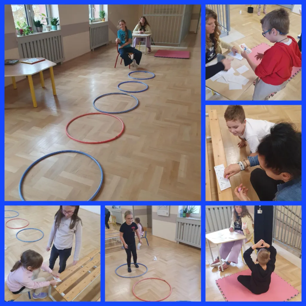 Na uczestników czekały: bieg slalomem, przeskok przez przeszkodę, czołganie się, skoki obunóż, wykonanie wylosowanego ćwiczenia ruchowego oraz rzut woreczkiem do celu. 🏃♀️🤸♂️🎯