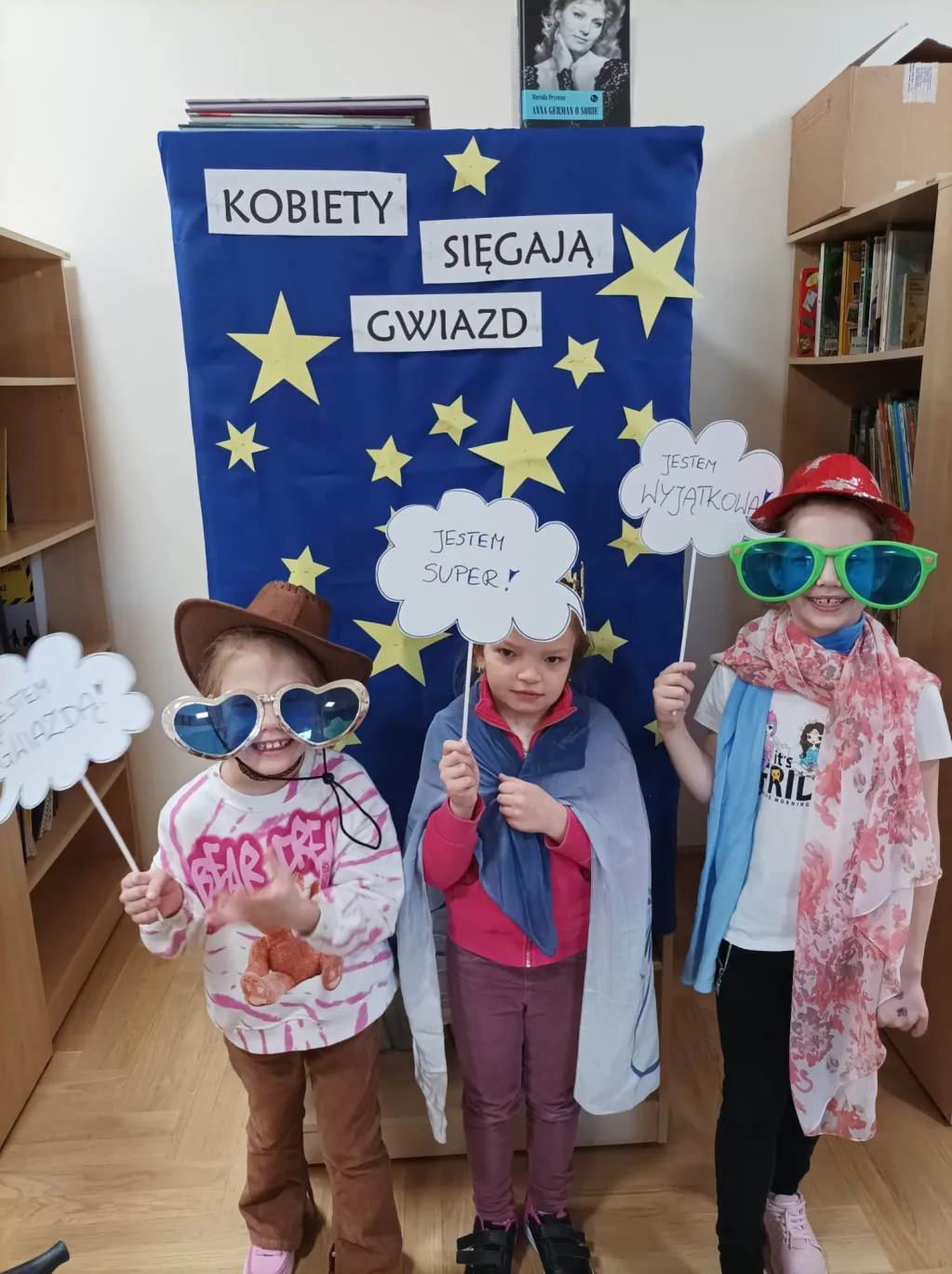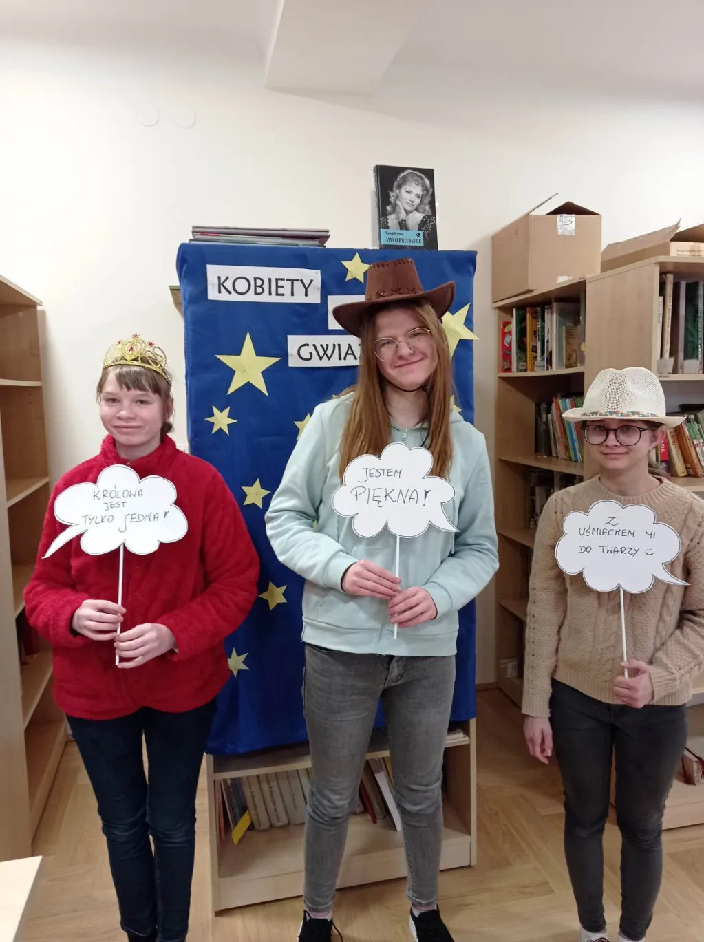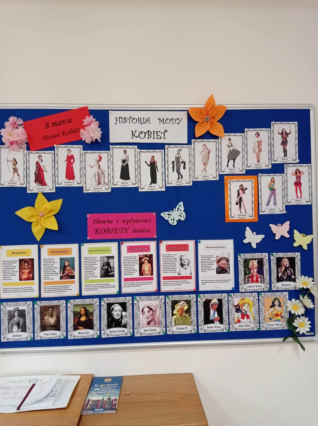 8 marca to dzień miły dla wszystkich pań, tych małych i tych większych. Biblioteka szkolna przygotowała kilka niespodzianek dla odwiedzających ją czytelniczek. Na uczennice czekała wystawa książek, w których bohaterkami są dziewczęta. Na tablicy mogły zobaczyć zdjęcia słynnych i wpływowych kobiet świata, a także poznać historię mody damskiej od starożytności do czasów współczesnych. Cały dzień w sali bibliotecznej rozbrzmiewała relaksująca muzyka, a w Kąciku Relaksu można było poczytać czasopisma kobiece oraz wyrazić siebie podczas kolorowania najróżniejszych rysunków. Na chętne damy czekała fotościanka zatytułowana „Kobiety sięgają gwiazd” (pomysł wykorzystany za zgodą #BibliotekaPublicznaLubicz). Akcja, której celem było rozbudzić wśród dzieci pasję do czytania i zachęcić do częstszego odwiedzania biblioteki, cieszyła się dużym zainteresowaniem. Uczennice świetnie się bawiły.
