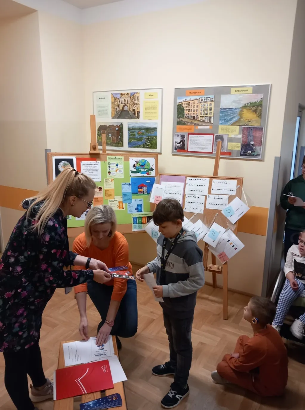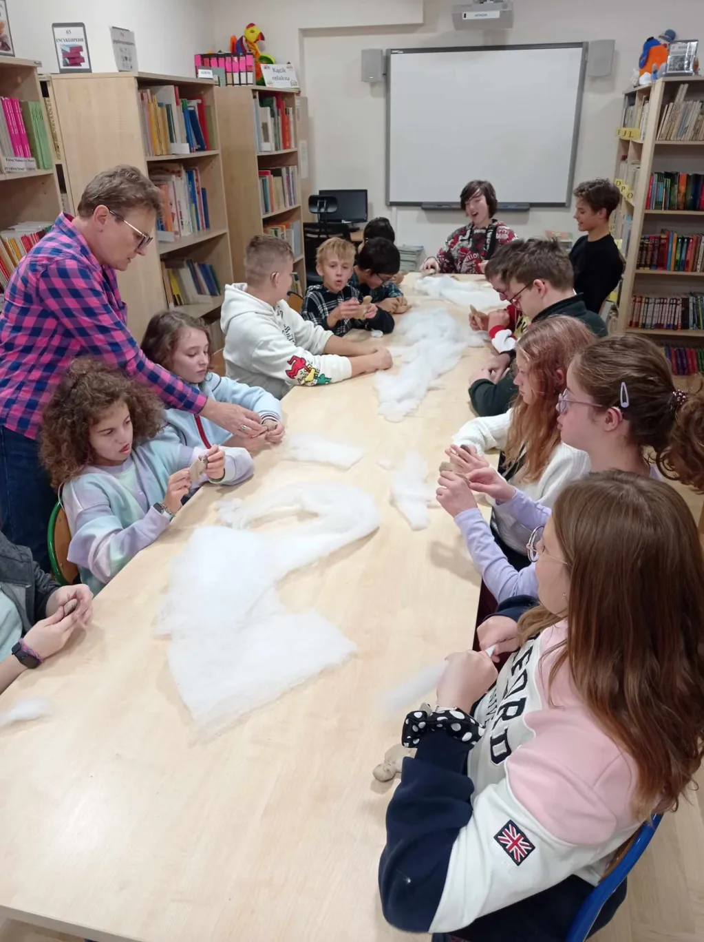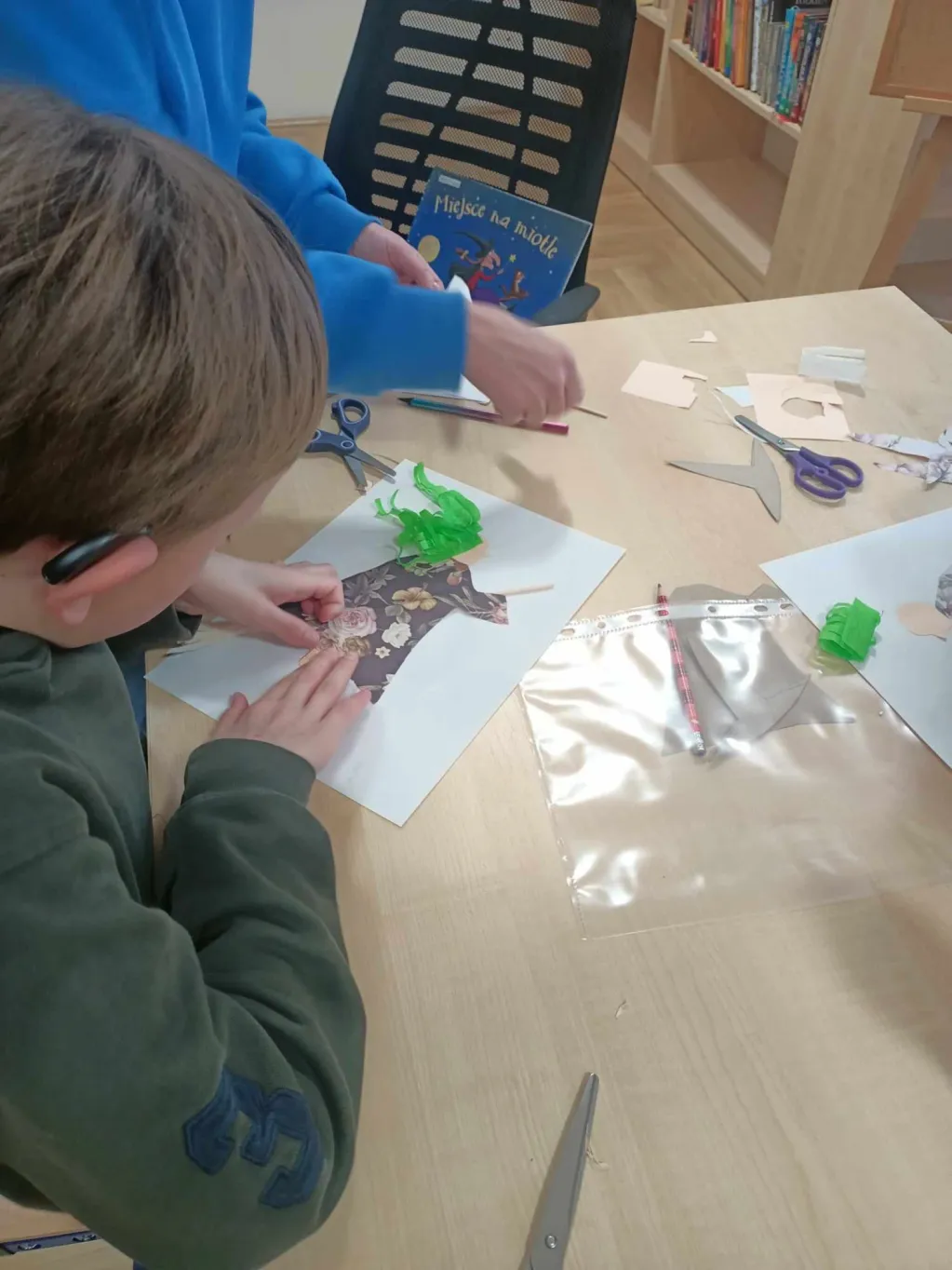 5 października 2023r. uczniowie klas 5a, 5b i 6b wzięli udział w warsztatach artystycznych prowadzonych przez Panią Emilię Kaczmarczyk. Na zajęciach zatytułowanych „Zaczarowany świat sztuki” dzieci poznały sylwetkę Witkacego, a następnie wykonały zakładki do książek inspirowane jego twórczością. Na drewnianych paskach przyklejali fragmenty różnych obrazów artysty, które stworzyły oryginalne kolaże. Zwieńczeniem pracy było ozdobienie zakładek puszystym sznureczkiem. Uczniowie byli pod wrażeniem efektu oraz tego, że w tak łatwy sposób można zrobić cos ładnego.