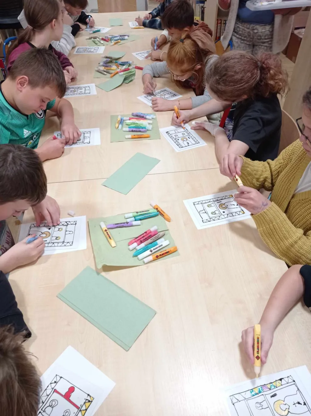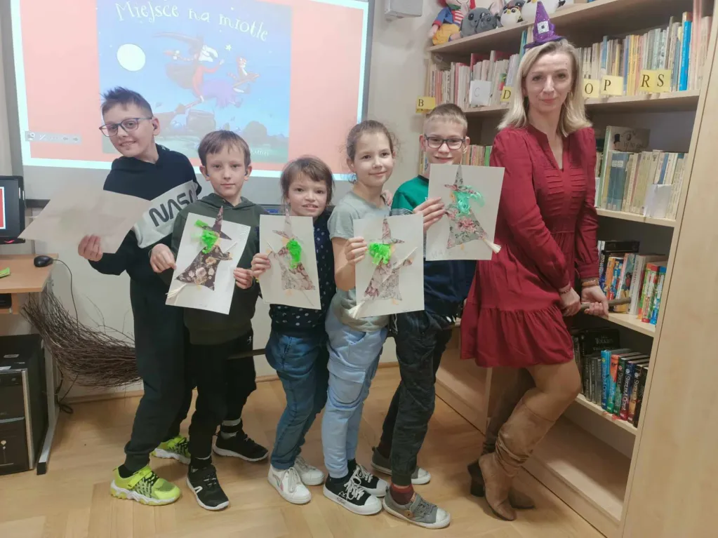 W piątek 15 marca bibliotekę szkolną odwiedziła „szara” i „żółta” grupa świetlicowa wraz z wychowawczyniami. Dzieci uczestniczyły w zajęciach czytelniczych dotyczących przyjaźni, życzliwości i wzajemnego pomagania. Uważnie wysłuchali książki autorstwa Julii Donaldson pt.: „Miejsce na miotle”, poznali cechy dobrego przyjaciela oraz wykonali piękne prace przedstawiające przyjazne czarownice.