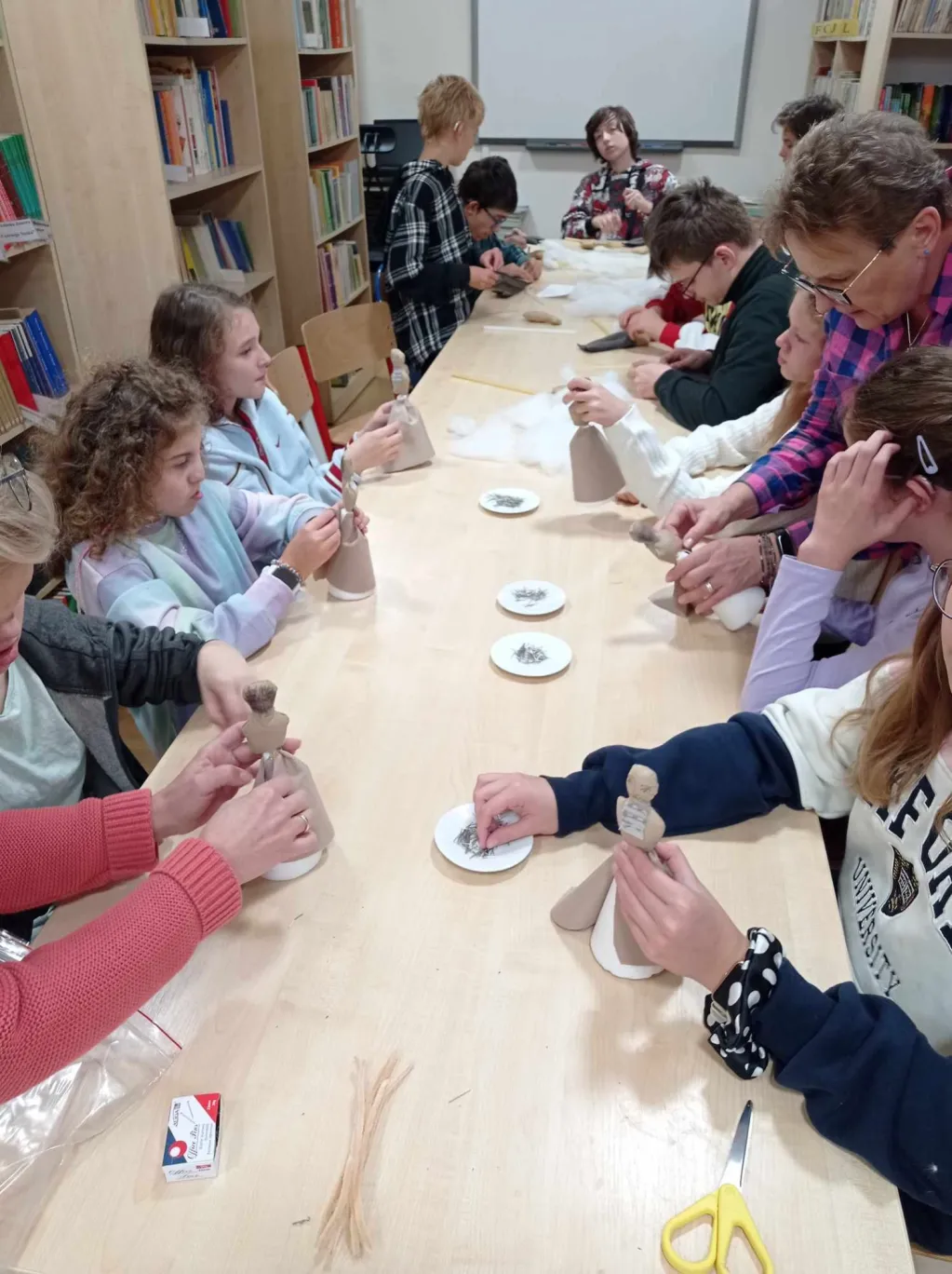Aleksandra Piłsudska, żona Józefa Piłsudskiego, znalazła się na liście osób uhonorowanych przez Sejm RP tytułem patrona roku 2023. W związku z tym uczniowie klas 6a, 7a i 7b poznali po krótce jej biografię. Dowiedzieli się o jej zaangażowaniu w działalność niepodległościową w czasie I wojny światowej oraz w działalność charytatywną. W drugiej części spotkania warsztatowego uczniowie przystąpili do zrobienia figurek naszej bohaterki oraz jej męża. Zadanie wymagało dużego zaangażowania, dokładności oraz cierpliwości. Pani Emilia przygotowała elementy, które były najbardziej czasochłonne, a uczniowie łączyli je tworząc przepiękne rękodzieła.