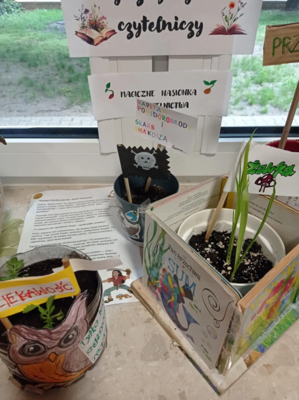 Nasza szkoła przyłączyła się do Ogólnopolskiej Akcji Siania Nasionek Czytelnictwa, która została połączona z obchodami Światowego Dnia Książki i Praw Autorskich. Chętni uczniowie z klas 1 – 8 zasiali magiczne nasionka symbolizujące wrażliwość na książki oraz wartości z nich płynące. W galerii przedstawiamy wszystkie prace, a wyróżnione zostały roślinki następujących uczniów: Marcin P. z kl. 1b – Literowiec pospolity, który rozwija wyobraźnię Fabian N. z kl. 2a – Skarb Smakosza Michał F. z kl. 1a – Ciekawość Julia S. z kl. 6a - Przyjemność Wszystkim uczestnikom dziękujemy za wzięcie udziału w naszej akcji.