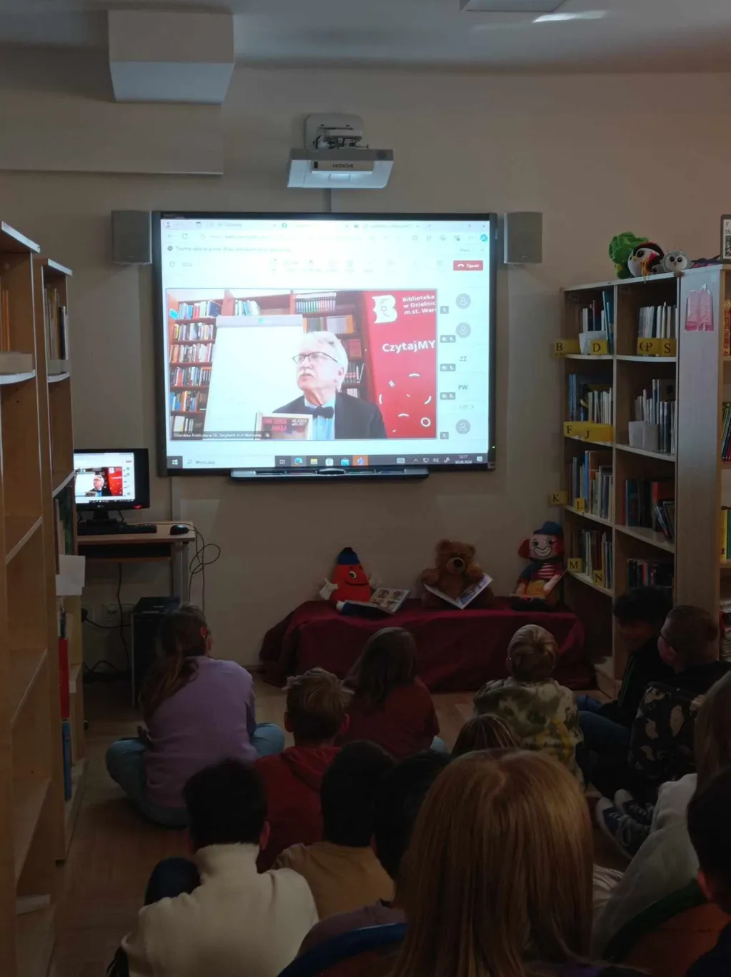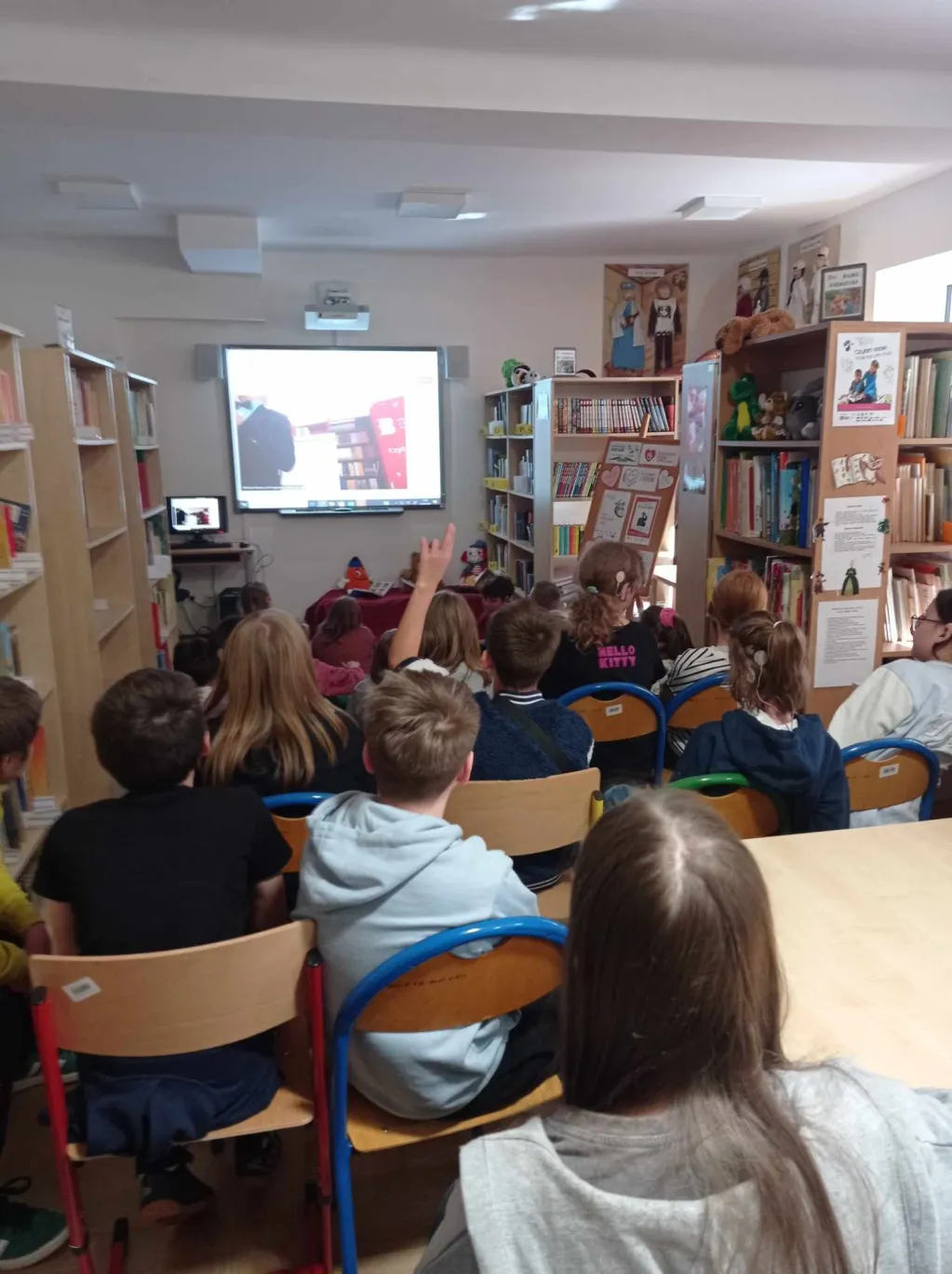 W poniedziałek 30 września w ramach akcji „Czytamy z sercem” organizowanej z okazji obchodów Ogólnopolskiego Dnia Głośnego Czytania oraz Światowego Dnia Serca, uczniowie klas 5-tych uczestniczyli w spotkaniu autorskim z Panem Wojciechem Widłakiem. Spotkanie z pisarzem było w formie on-line, dzięki czemu wzięło w nim udział ponad tysiąc osób z całej Polski. Uczniowie wysłuchali fragmentu książki pt. „Dwa serca anioła” opowiadającej historię chłopca, u którego zdiagnozowano poważną wadę serca. Na zakończenie autor odpowiadał na pytania uczniów zgromadzonych w Sali Czytelni Naukowej i tych, którzy zdalnie uczestniczyli w spotkaniu. Taka forma kontaktu z pisarzem była bardzo ciekawym doświadczeniem dla dzieci.
